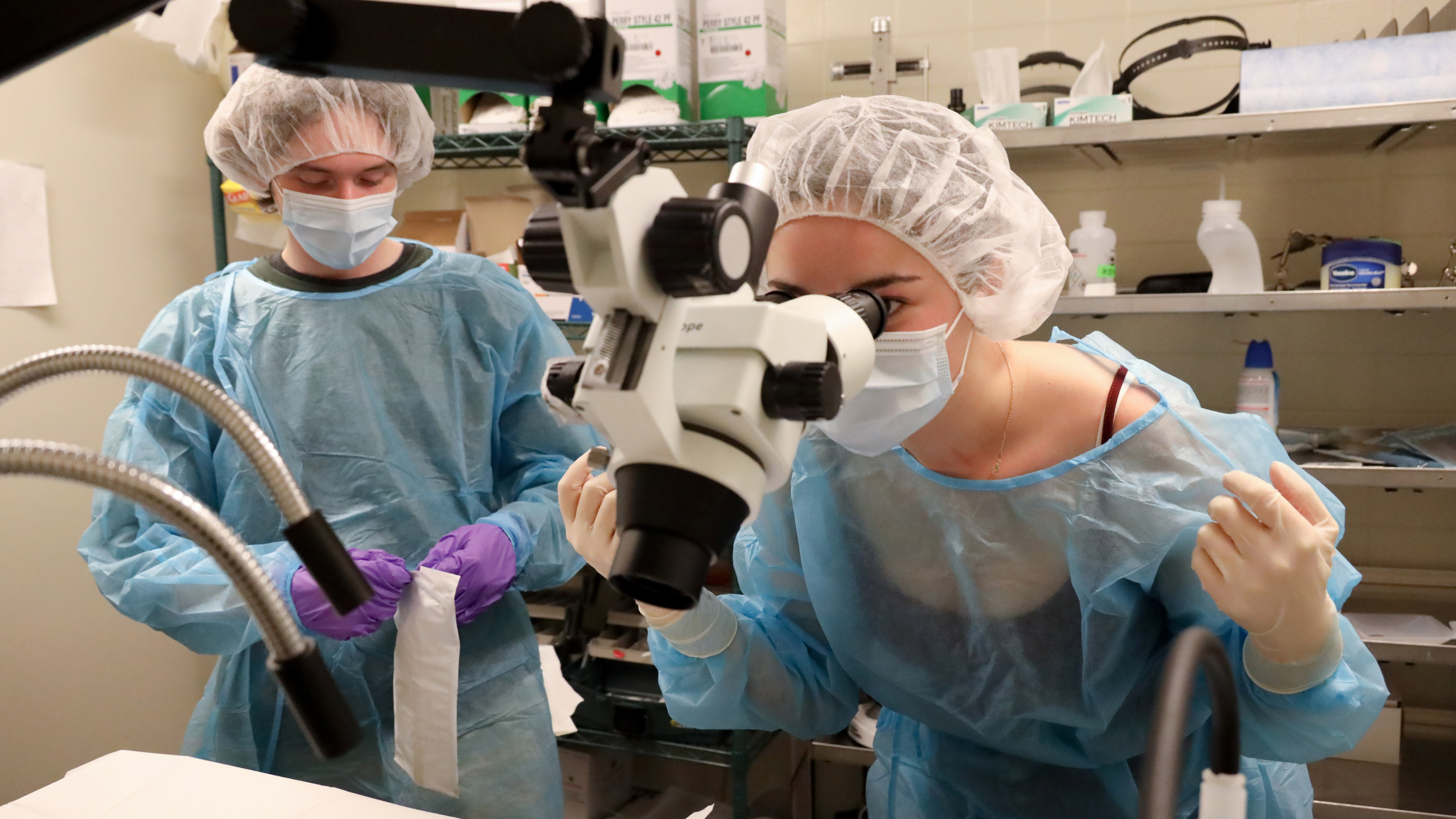 - Junior Sami Lawrence similarly relishes the learning opportunities in the lab: “So many specifics come up in the lab that don’t come up in the classroom. Our postdoc Ryan will say, ‘You learn about this in the classroom. Here’s what it looks like in the brain and this is what it does.’ Once you can see and visualize it, you realize it’s so cool. I have thought so many times, the way science works is so crazy.”